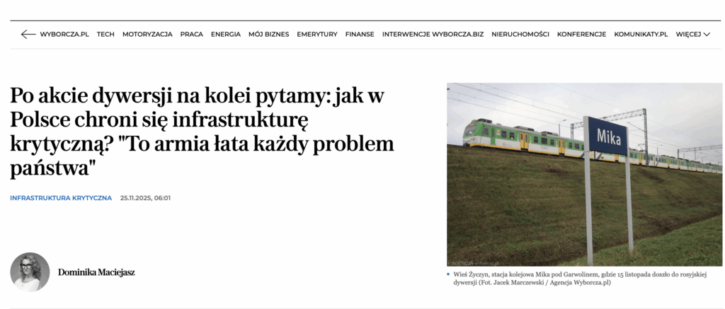 Zapraszamy do zapoznania się z cały komentarzem eksperta – Po akcie dywersji na kolei pytamy: jak w Polsce chroni się infrastrukturę krytyczną? „To armia łata każdy problem państwa”